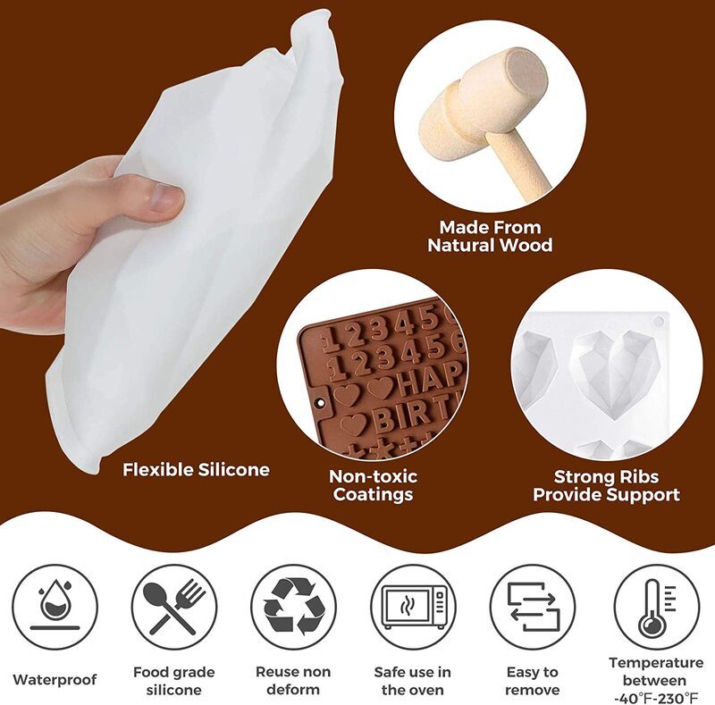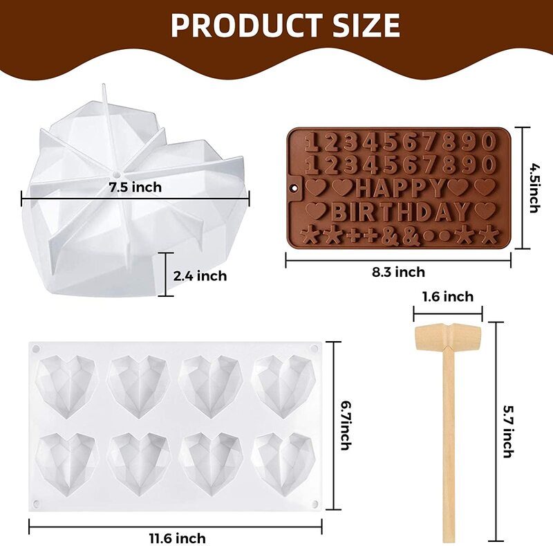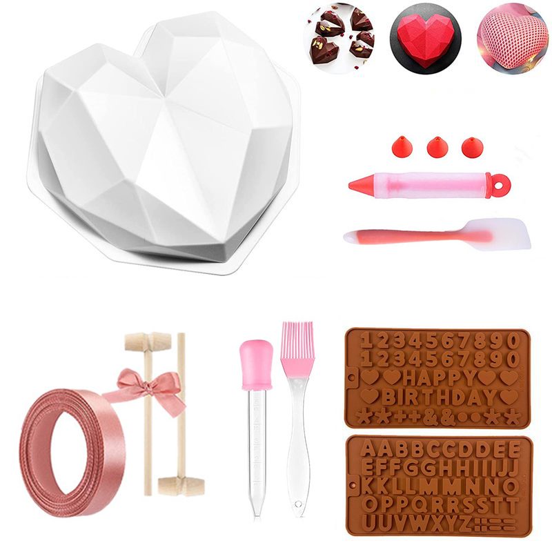Brand New 10pcs Chocolate Heart Mold, Diamond Heart Shaped Mousse Cake Mold, Letter Number Mold Trays Silicone Molds Silicone Moulds Silicone Mould Candy Chocolate Ice Tray Molds Kitchen Baking Tools BPA Free Dishwasher & Freezer Safe Non Stick Baking