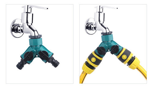 Converts a single garden tap into 2 outlets.