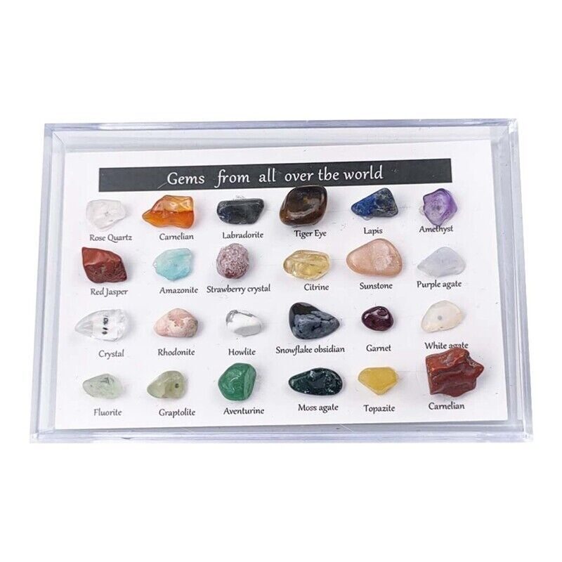 Brand New Natural 24 Mini Healing Crystal Raw Rough Stone Storage Gift Box, Natural Crystal Agate Stone, Mineral Rock Polished Stone Geological Teaching Materials, Stone Collection Popular Stones Decoration Gemstones Geology Education Collection