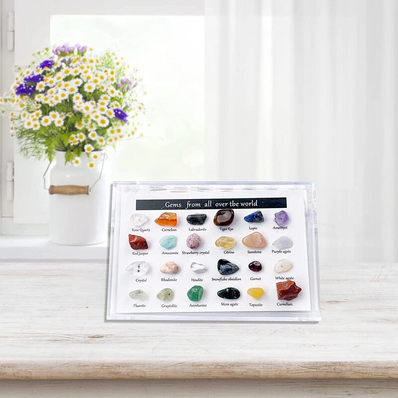 This Natural minerals boxed crystal collection storage gift box with a variety of 24 mini size gemstones, which is beautiful and various in shape. Children will love this gift as they love to explore nature.