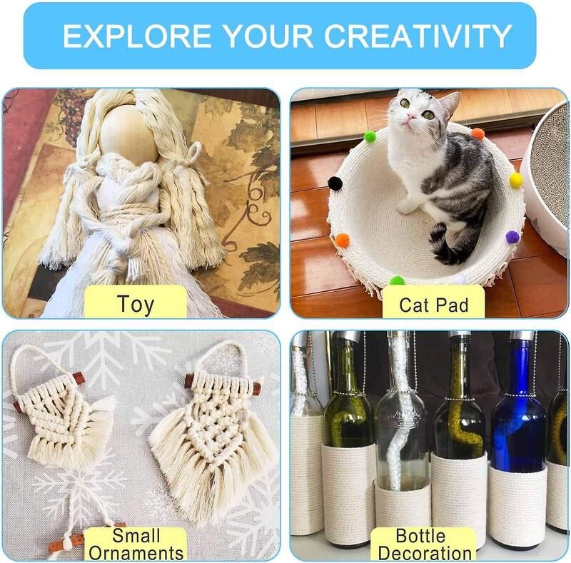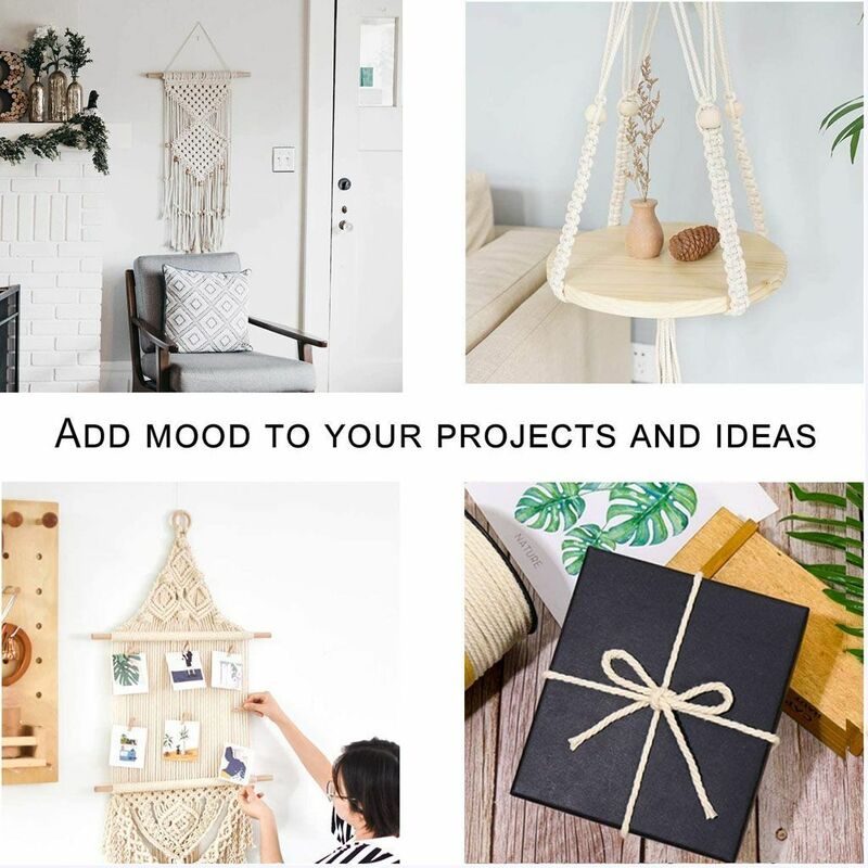 ECO-FRIENDLY: Cotton is recyclable and thus an environmentally friendly alternative to using synthetic fibers, the macrame cord can be reusable for your other things, such as trussing turkeys, preparing meat GOOD FEELING: Perfect thickness and lightweight cotton baker twine, packed on a coil and it is very tightly, durable and good touch feeling. It has high tensile strength, and low extensibility, and ensures better breathability