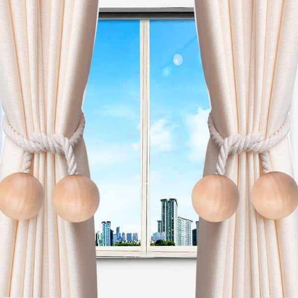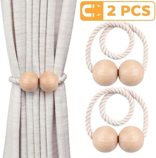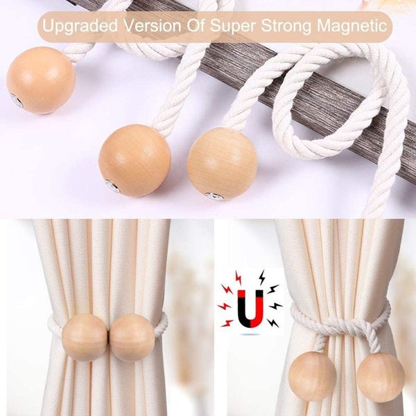 Brand New 2pcs Wooden Strong Magnetic Curtain Tiebacks Curtain Holdbacks Window Tassels Tie Backs Clips Decorative Rope Holdback Holder for Big, Wide or Thick Window Drapries