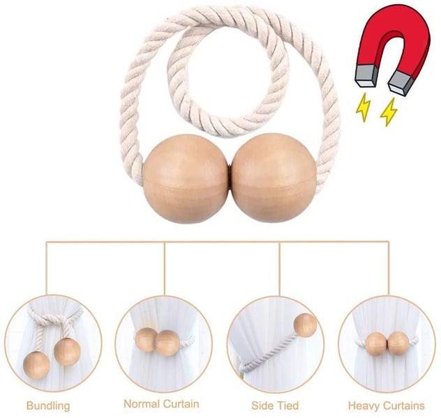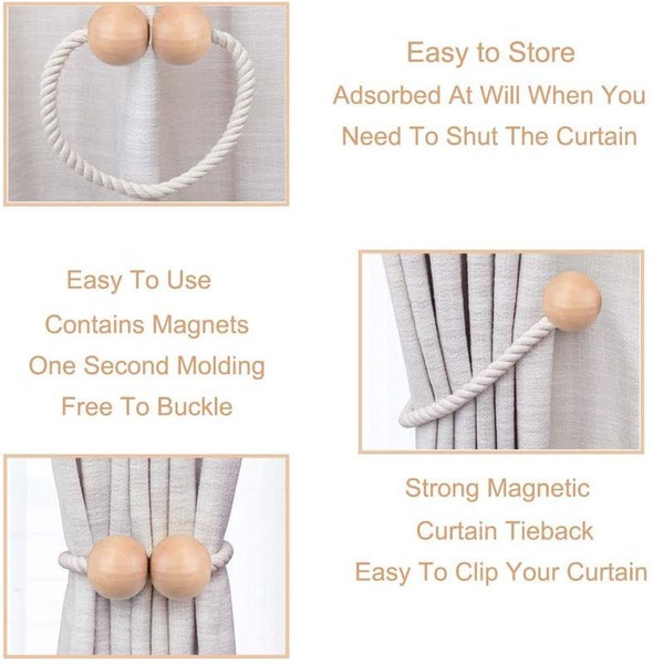 STRONG MAGNET: Whether it is thick or thin curtains, this curtain buckle can be applied. The strong magnetic tie backs will hold the curtain tightly without sliding down. For ultra-thin curtains, you can twist the rope of tie backs twice and then fix it. High-quality materials and workmanship can make you happy both from the feel and the vision.