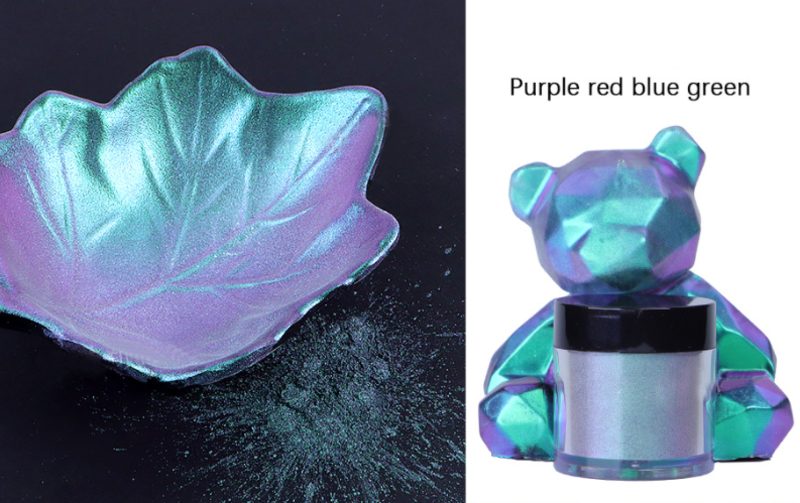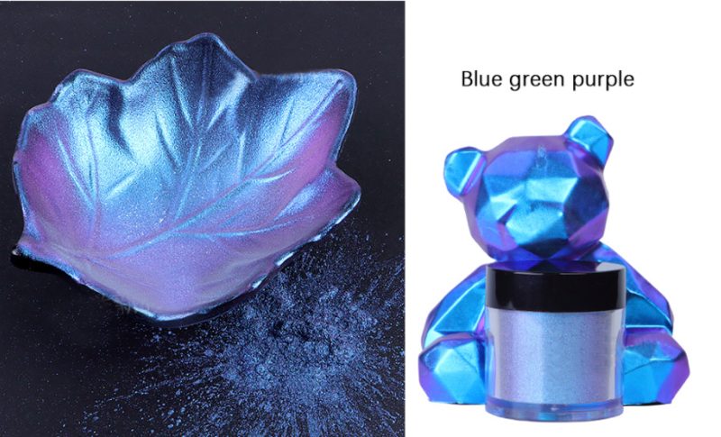 Made of high-quality materials, 3 different color changes, high brightness, stability. Pigment color is changing at different direction,Vibrant and sparkle AB Effect pigment for resin projects.