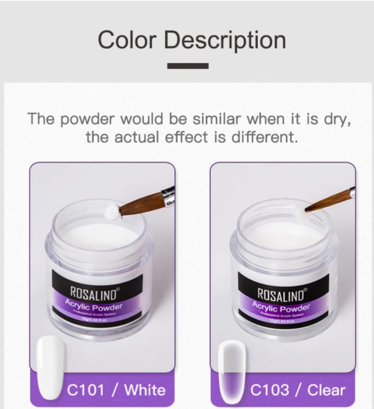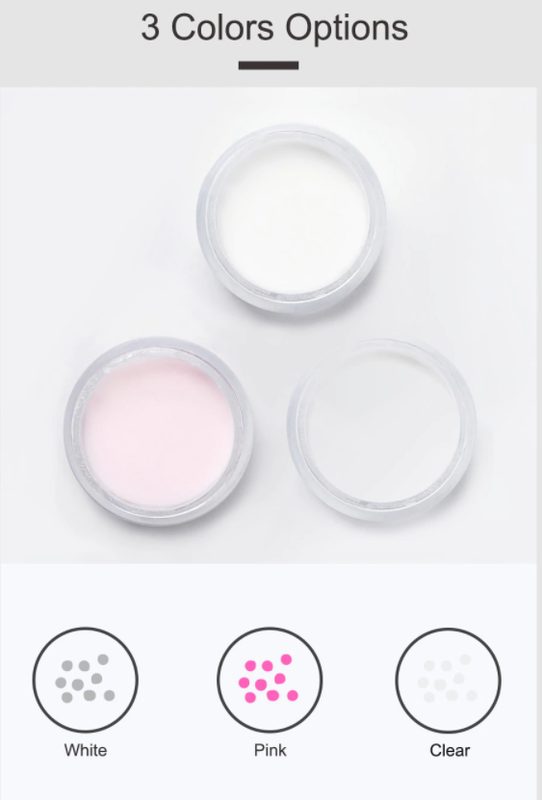 Acrylic powder Color: clear, white, pink