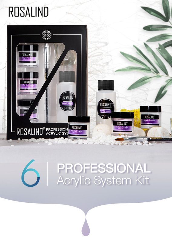 Brand New ROSALIND Acrylic Powder Poly Gel For Nail Polish Nail Art Decorations Crystal Manicure Set Kit Professional Nail Accesorios 6pcs set Nail Acrylic Powder 30ml Liquid Set Nail Brush Beginner DIY Kits
