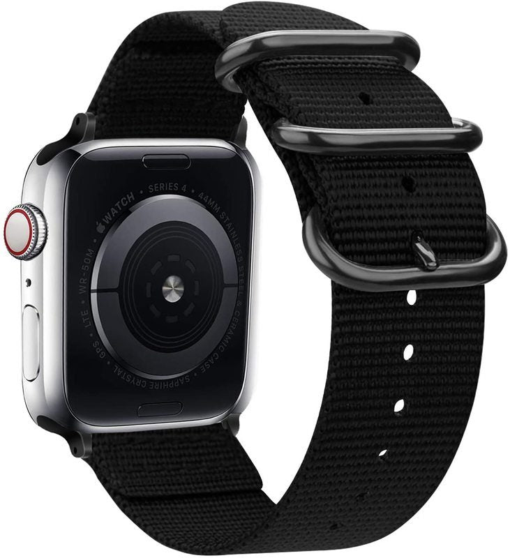 Durable woven nylon bands are soft, breathable, flexible and water resistant; Inspired by military bands, these rugged watch straps are built tough yet comfortable for all day wearing. Comes with stainless steel black-color classic buckle, anti-slip.