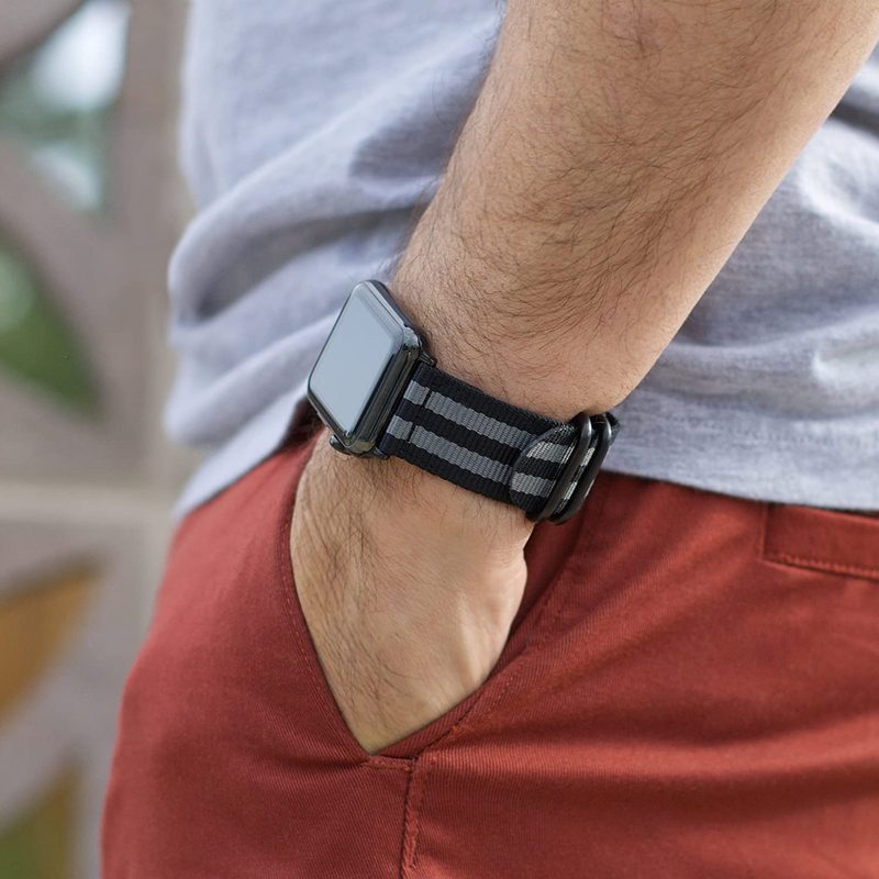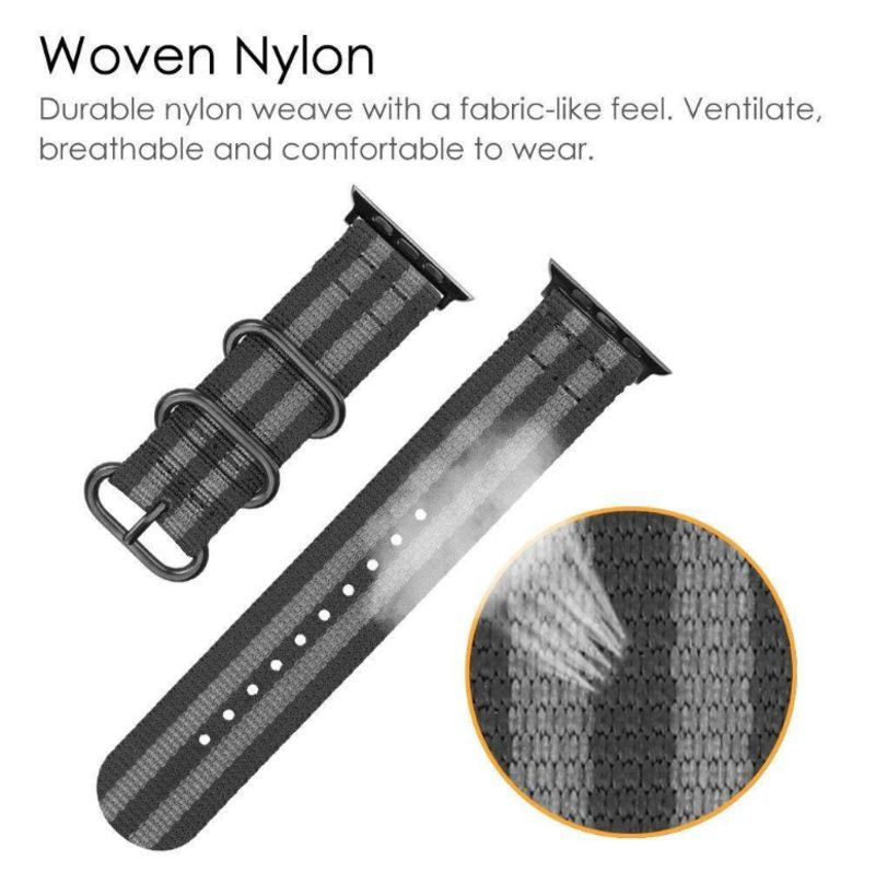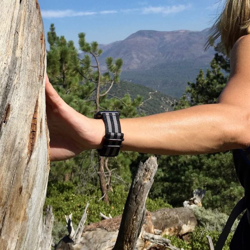 Durable woven nylon bands are soft, breathable, flexible and water resistant; Inspired by military bands, these rugged watch straps are built tough yet comfortable for all day wearing. Comes with stainless steel black-color classic buckle, anti-slip.