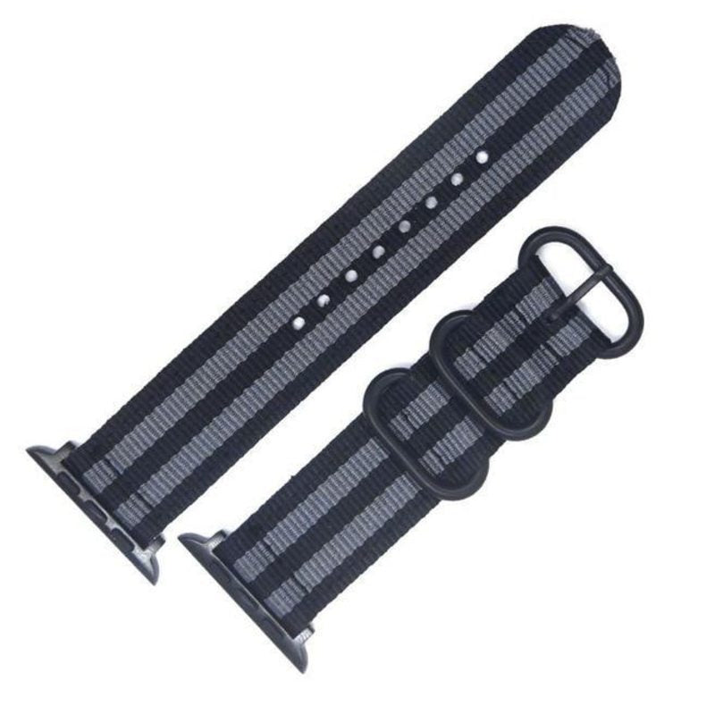 Brand New Woven Nylon Nato Fabric Compatible Watch Strap Buckle Watch Band for Apple Watch iWatch Series 5/4/3/2/1 42mm/44mm (Black & Grey Stripe)