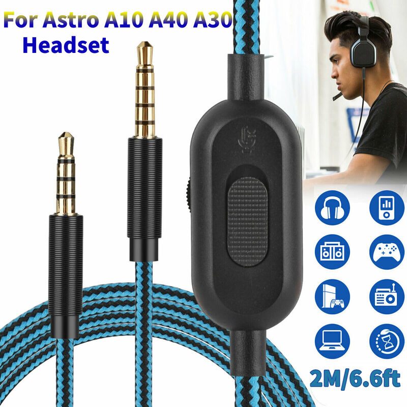 Brand New Replacement Audio Cable Cord Volume Control Mute for Astro A10 A40 A30 Headset 2M