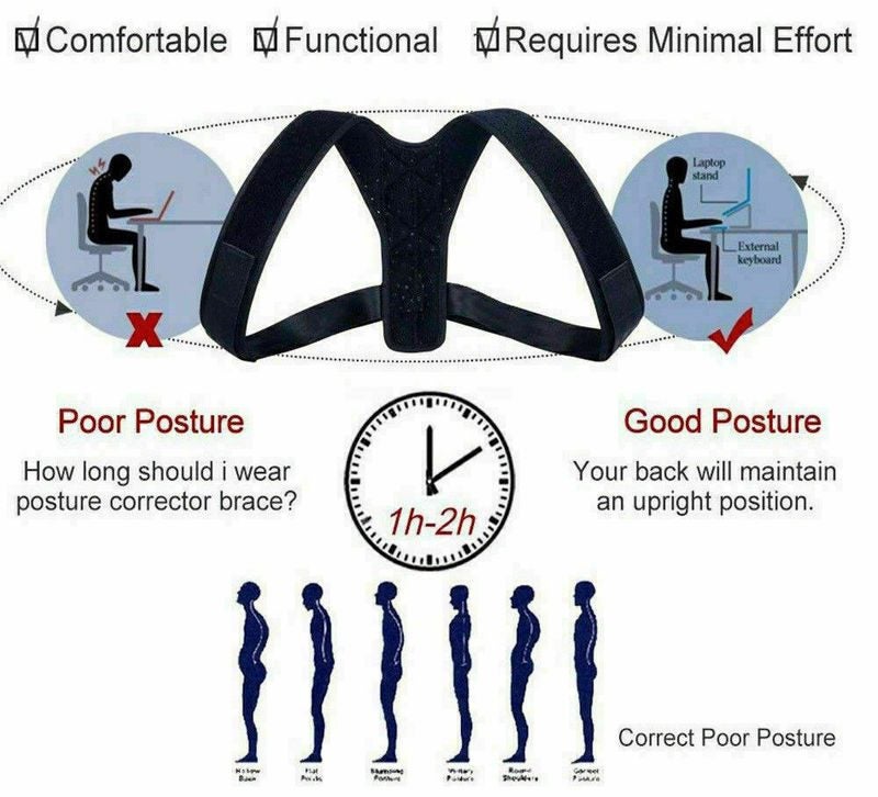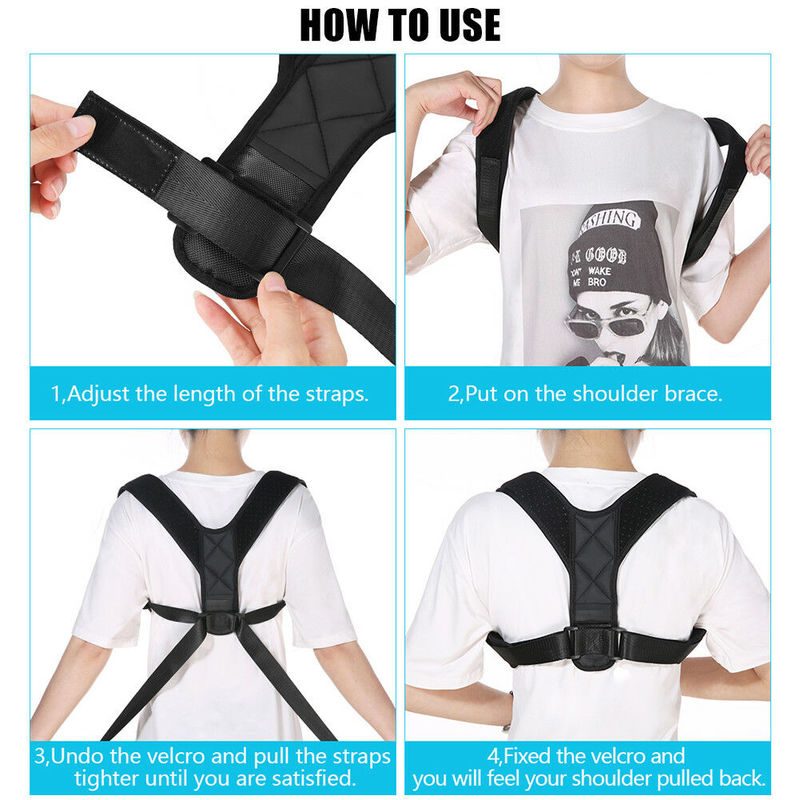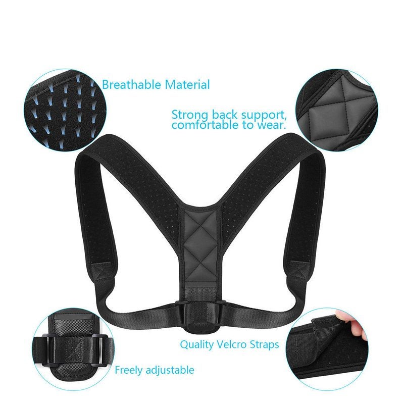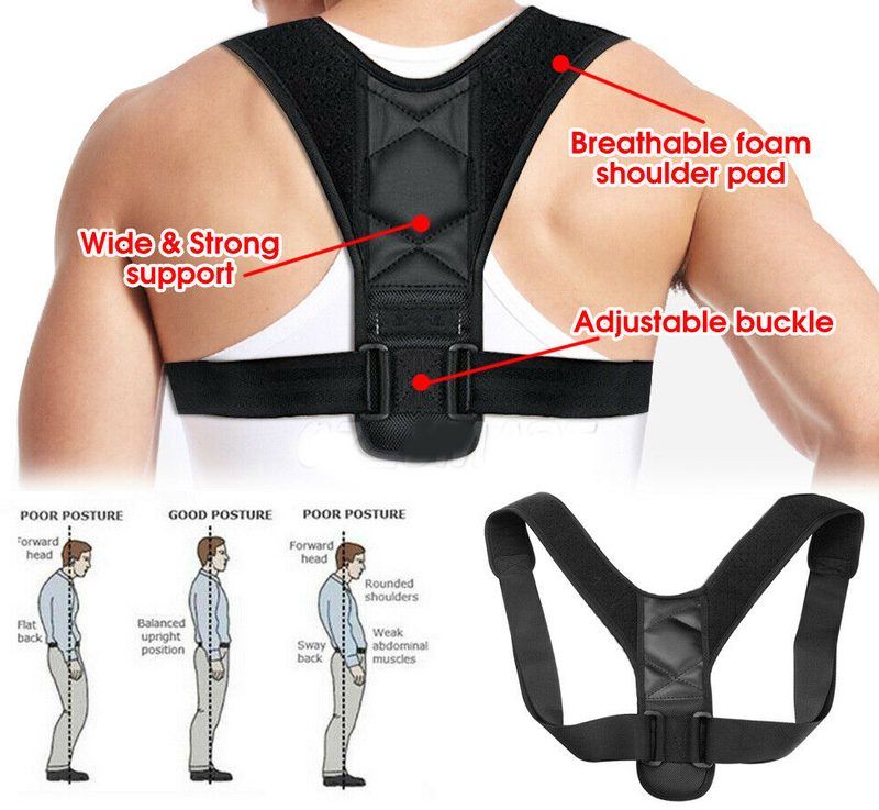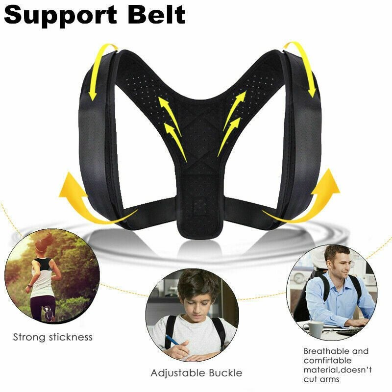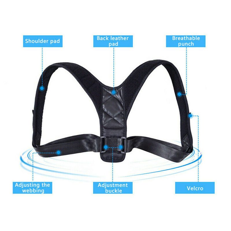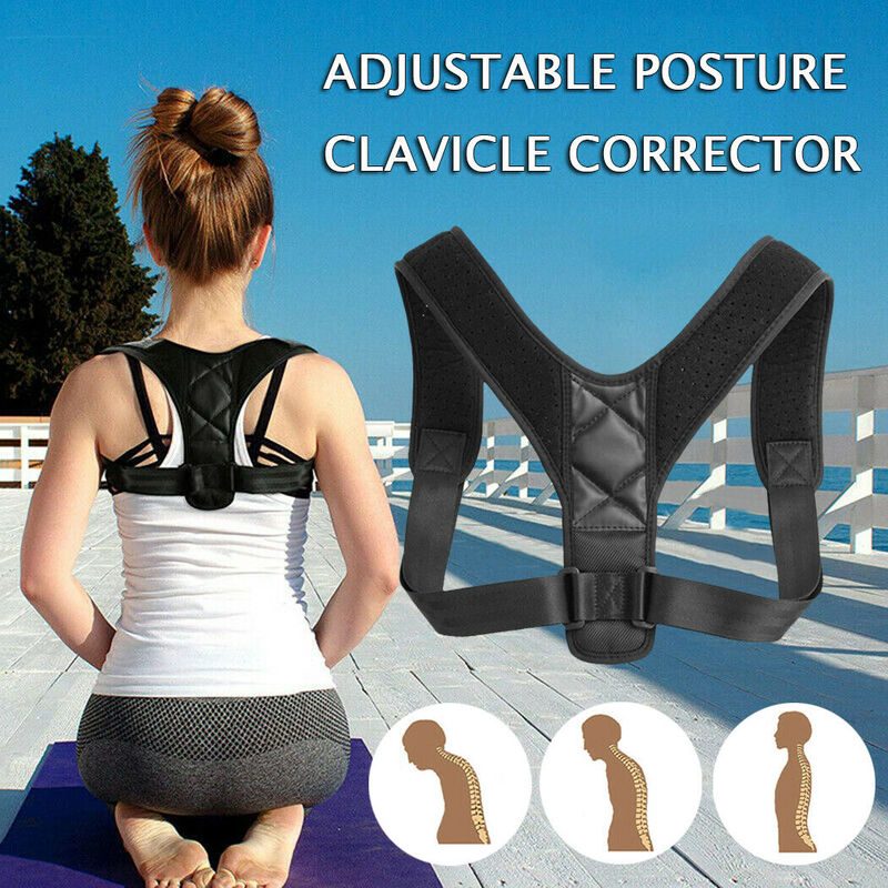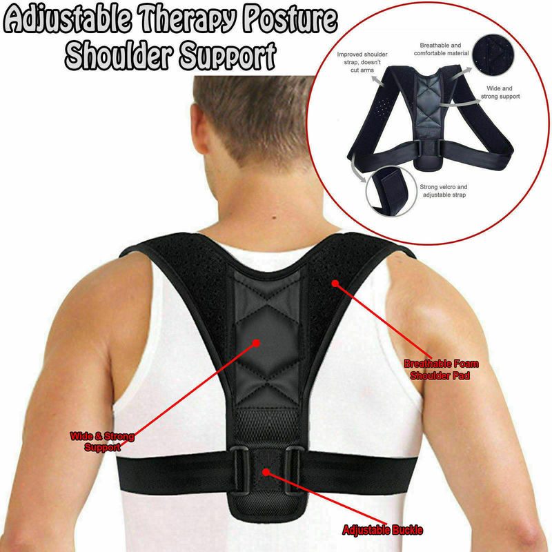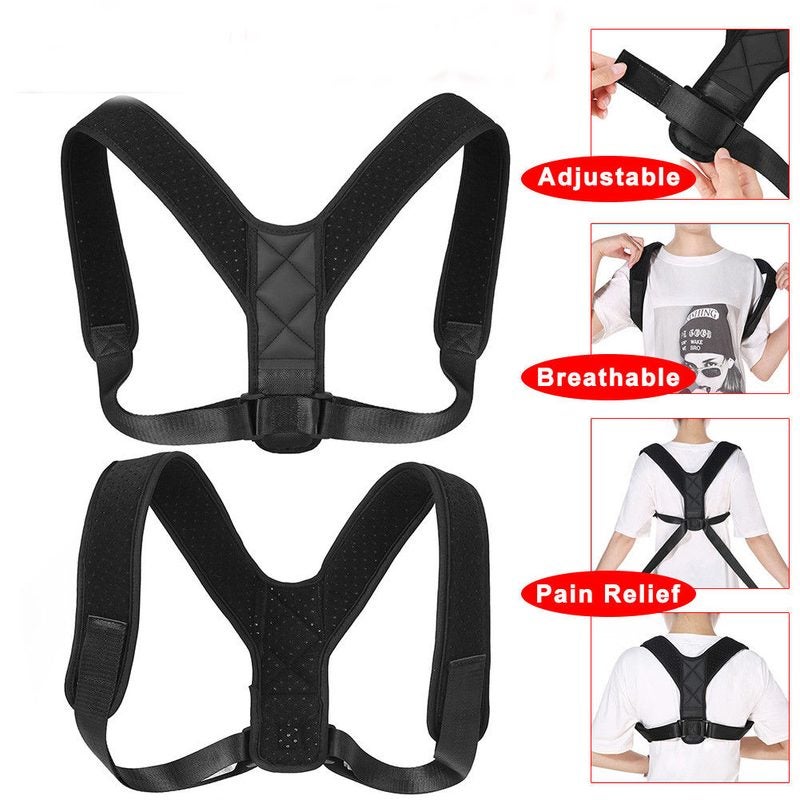 Black Adjustable Therapy Posture Corrector Clavicle Back Support Shoulders Brace Strap Correct Body Brace Belt for Men or Women