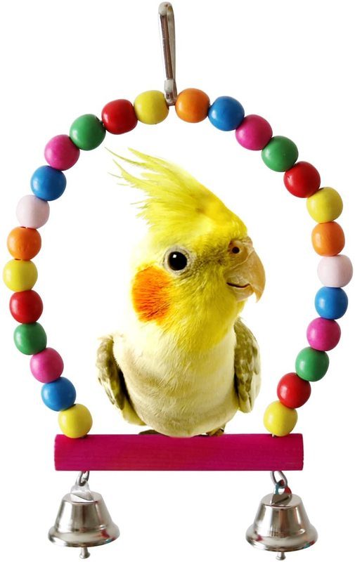 Mental and Physical Workout: The bird toys is durable and strong, the bird swing is the good place for your pet to rest or exercise. Pet birds love to peck and chew. Bell string and rattan ball bite make your pet love.