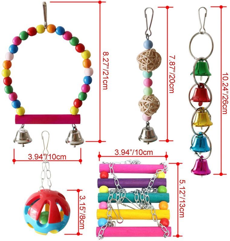 Safe to chew: All birds like to make noise and colorful toys, Give your pet birds a treat and have hours of fun watching them play, fits most cages, steel hook connects to cage easily.