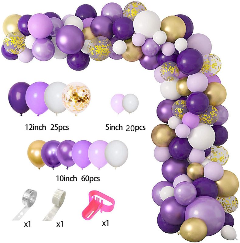 Brand New Purple Balloons Garland Arch Kit, 125Pcs Light Pastel Purple Gold White Confetti Latex Metallic Balloons for Baby Shower Wedding Birthday Anniversary Graduation, Bridal Shower Bachelorette Party Decorations Kit Garland Wedding Decorations