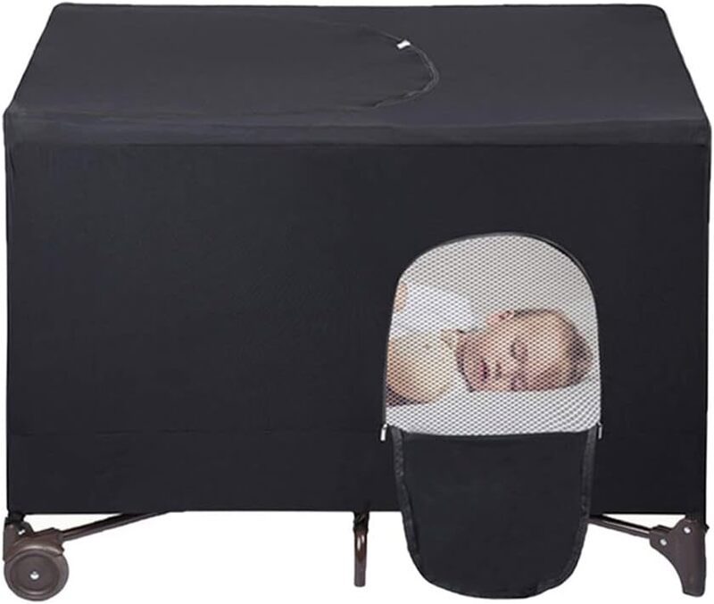 Brand New Blackout Cover for Pack N Play, Foldable Baby Sleeping Bed Cot Portacot Blackout Tent Travel Crib Canopy with Safety Vents, Breathable Stretchy Portable Snooze Shade Slumber Pod Baby Safety Compact Travel Sleeping Bed Tent Sun Shade Curtain for Indoor Outdoor Playard to Sleeping or Play Toddlers Travel