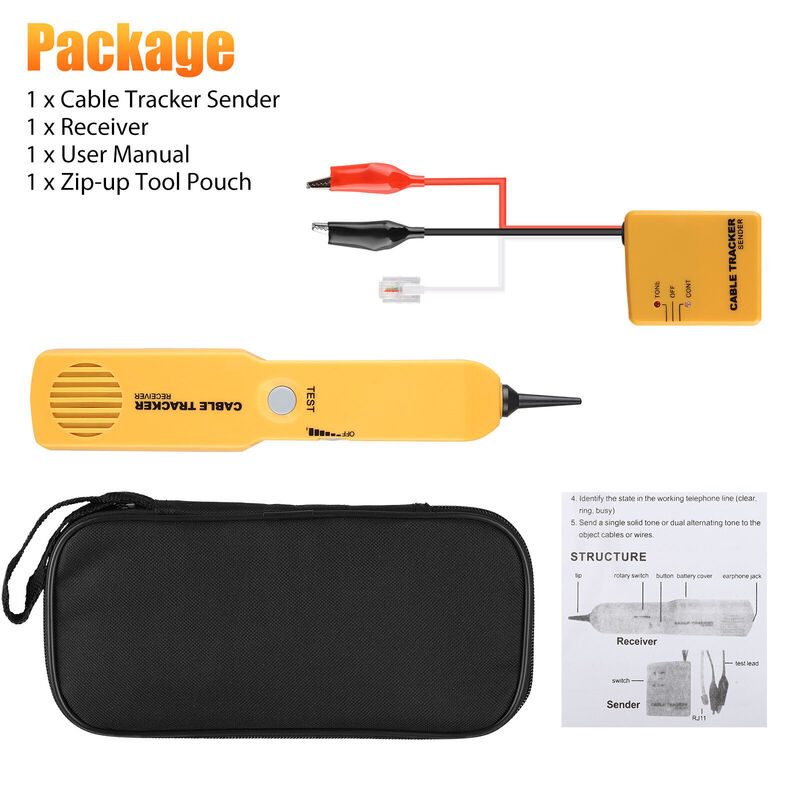 Brand New Network RJ11 Line Finder Cable Wire Tone Generator Prob Tracer Tracker Tester Sender Wire Tracer+Tool Bag Pouch