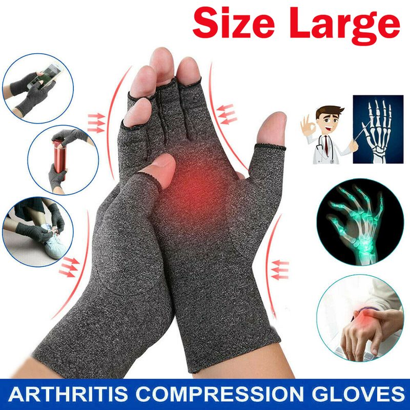 Brand New 1 Pair Grey Arthritis Gloves Compression Gloves Finger Pain Relief Hand-Wrist Support Brace (Size Large)