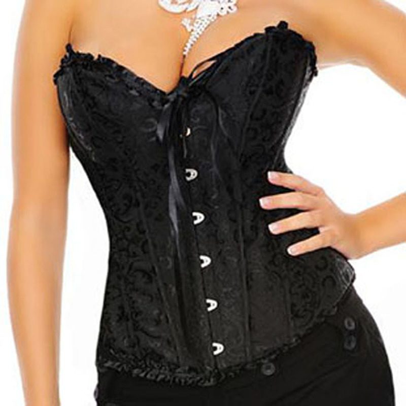 Sexy Lingerie Black Intimate Burlesque Brocade Gothic Tapestry Jacquard Strapless Boned Corset Plus Size Womens Clothing Clothes