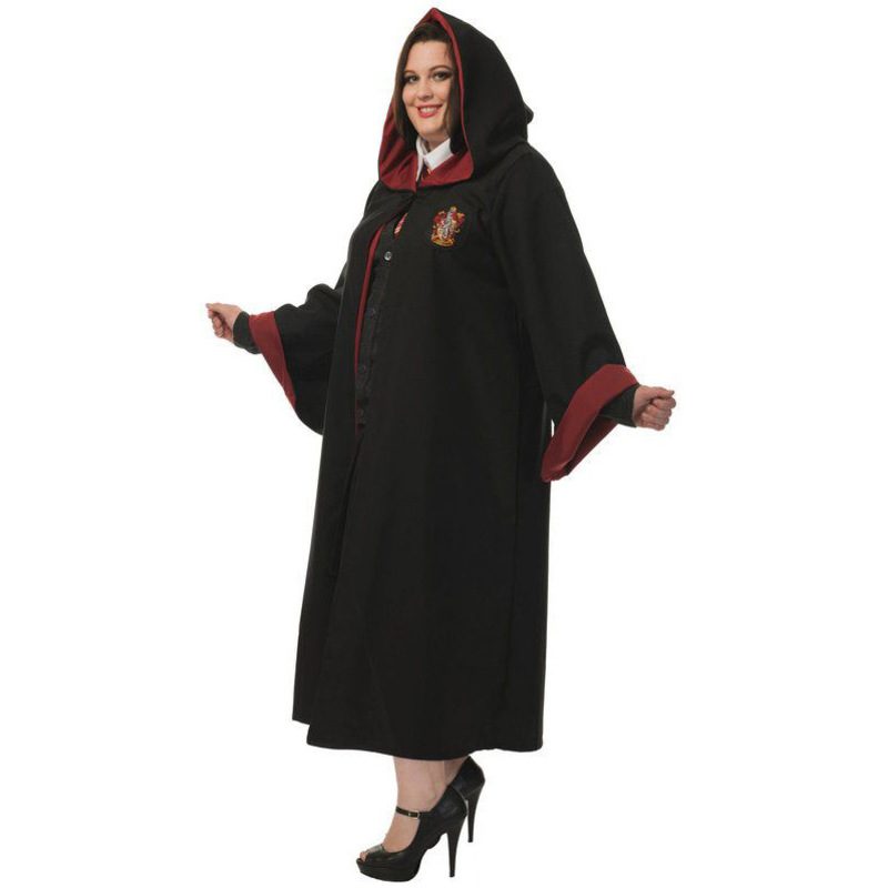 Black robe with attached hood and a Pattern Gryffindor patch on the front.