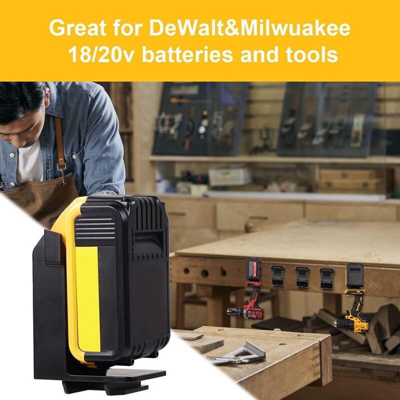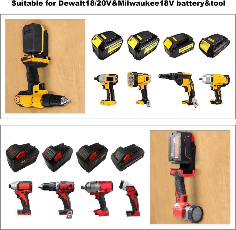 Brand New 2 in 1 Cordless Tool Mount & Battery Holder for for Dewalt 18V Drill Battery & Milwaukee Battery MOUNT Hanger Dock Holder Fit for 48-11-1820 48-11-1850 48-11-1860 Battery for 18V Battery and 20V Tool (5 Pack)