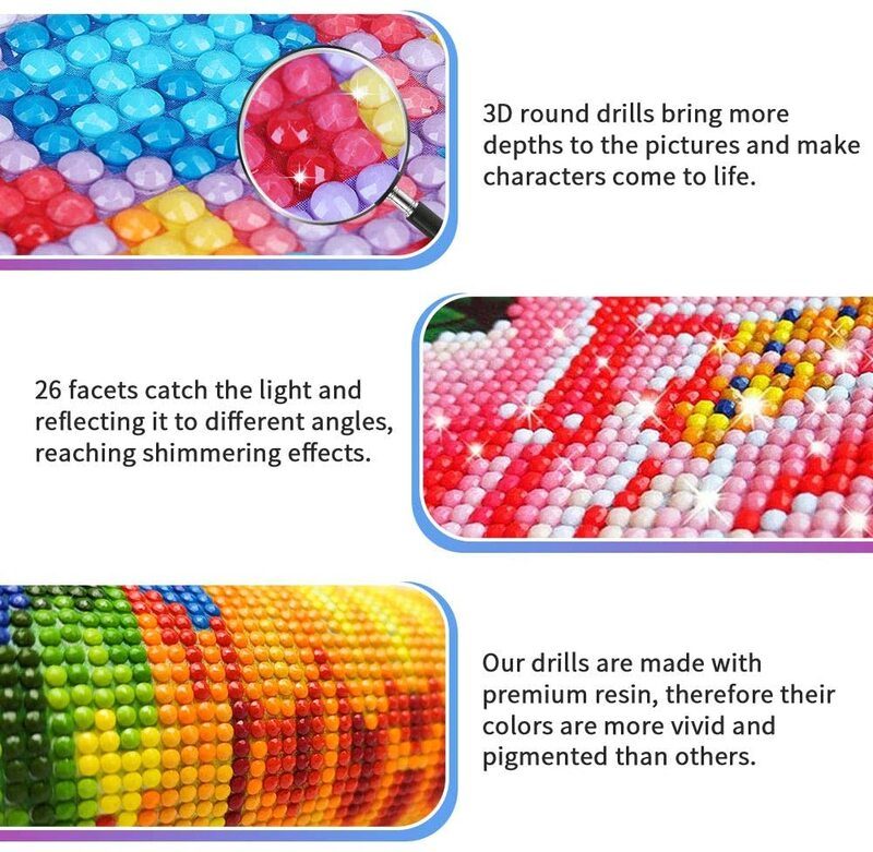 SUPER FLASH DIAMONDS - There are over 26 sections above the round drills to look shiny and will be never fade, more vibrant and brilliant than the resin diamonds. Shining in the light, is the most popular DIY decoration.