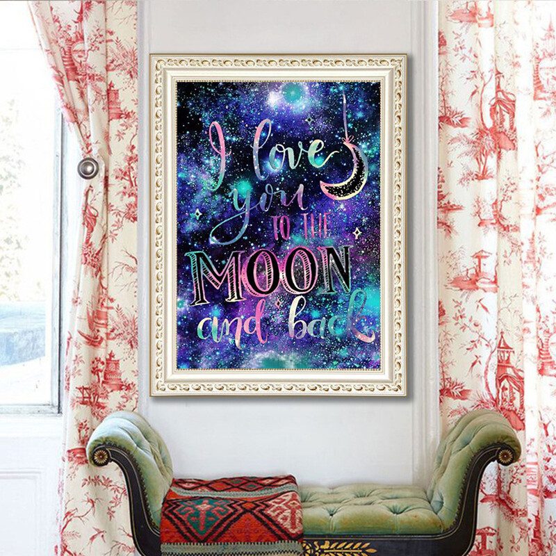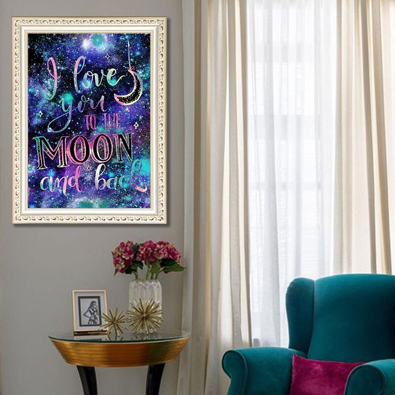 Brand New DIY 5D Diamond Painting Kits for Adults, Bright Drill Diamond Art Embroidery Cross Stitch Picture Supplies Arts Craft Wall Sticker Decor ( ‘I Love You to The Moon’ Print, 30x40cm)