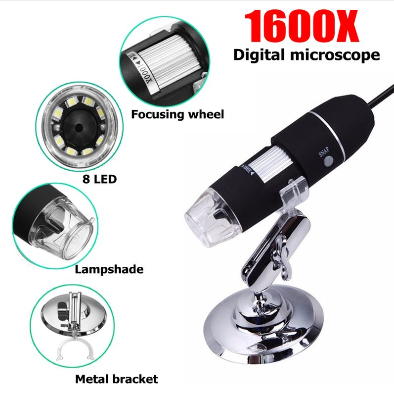 Brand New Portable 1600 x Zoom 8 LED USB Digital Microscope Camera Magnification Endoscope OTG with Stand for Windows Digital Magnifier Endoscope Camera Video With Stand