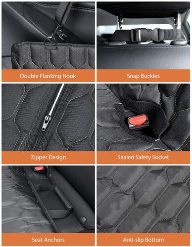 * High-Quality and Durable Material: This seat cover is made of four layers of materials-600D Oxford cloth, PP cotton, PVC210D Oxford cloth, and non-slip net, waterproof, scratch-resistant, and non-slip, making the product more durable and comfortable. It can also protect the back seat from dust, scratches, hair, and liquids, and keep the back seat dry and clean.
