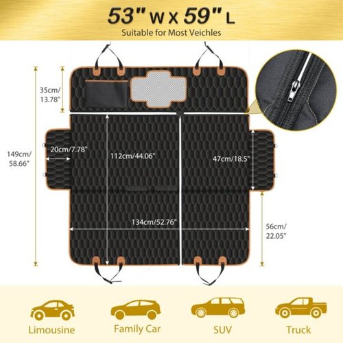 * Suitable For Different Vehicles: The 137x152cm large-size dog car seat cover is suitable for the back seats of most cars, SUVs, and trucks; not only for small and medium-sized dogs, but also for large dogs, and you can also untie the seat cover The zipper so that children/people can sit with your pet. In addition, it can also be used as a picnic mat.