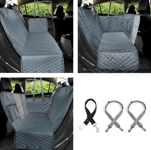 This auction is for one Brand New Dog Car Seat Cover, Convertible Dog Hammock Scratchproof Car Seat Cover with Mesh Window and 3 Seat Belts, Durable Nonslip Dog Seat Cover for Back Seat Protector for Cars Trucks SUVs (Grey)