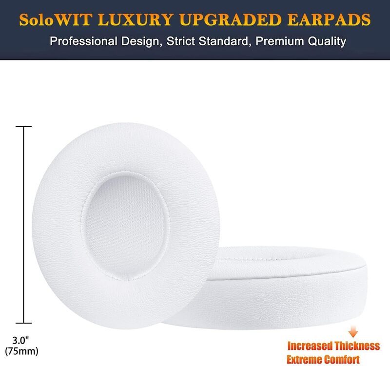 Brand New Earpads Cushions Replacement for Beats Solo 2 & Solo 3 Wireless On-Ear Headphones, Ear Pads with Soft Protein Leather, Added Thickness (White)