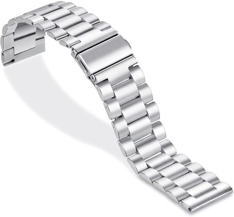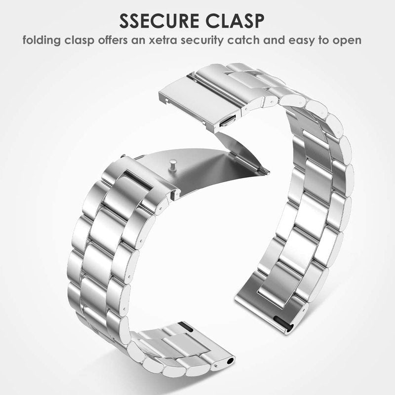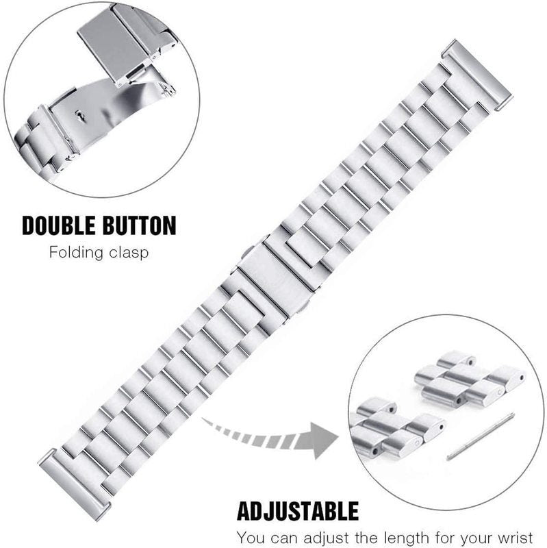 Material: Made of high quality stainless steel, with upgraded stronger durable double buckle. Beautiful design, elegant and generous. Makes your watch looks more unique. The unique folding clasp with double locking locks your wristband reliably. Easy to install and remove. The folding clasp features a precise locking mechanism, locks firmly and folds neatly within the Watch stainless steel band.