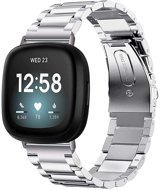 Brand New Compatible Replacement Bands Stainless Steel Strap Metal Watch Band For Fitbit Versa / Fitbit Versa 2 / Fitbit Versa Lite / Fitbit Versa SE Watch Loop Wrist Replacement Strap ( Silver )