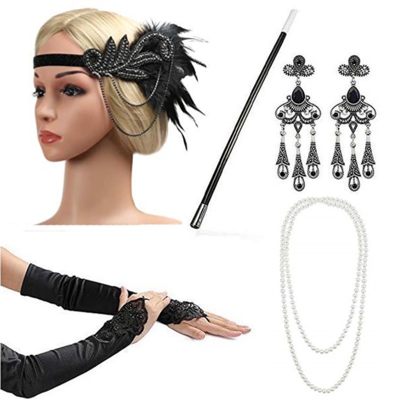 1920s Womens Vintage 6PCs Set Great Gatsby Fancy Dress Up Party Costume Flapper Charleston Womens Jewellery Accessories Perfect Christmas Gift