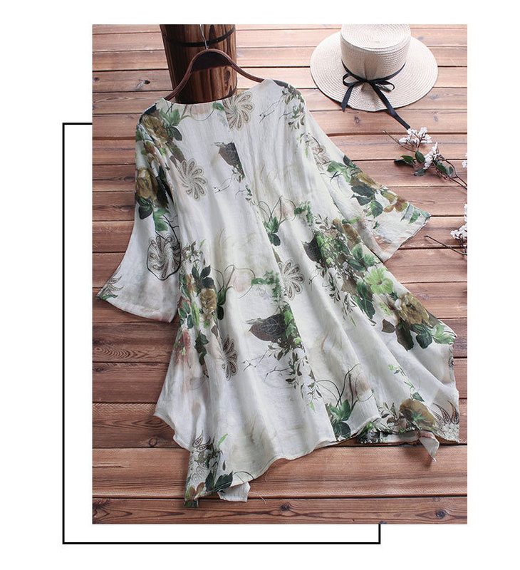 Beige Boho Floral Asymmetrical Shirt Blouse Top Tunic Dress T Shirt Tops Jersey Tshirt Dress Work Dress Summer Mini Dresses Womens Clothing Clothes Plus Size