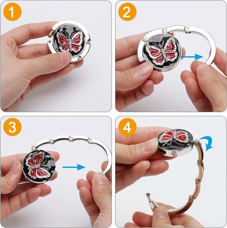 Foldable & Portable Design: This purse hook offers a pleasant way to hang your purse off the floor from tables and other surfaces in any public places. You can always keep your bag clean, close and safe with this purse hook. And you can slip it right in your purse too.