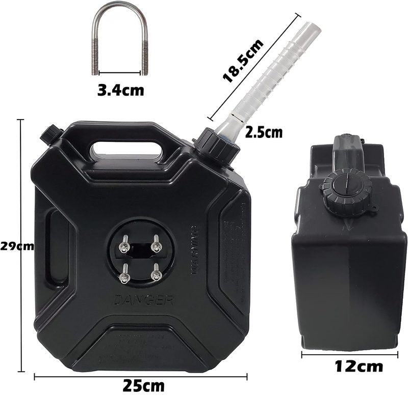 5L Capacity: 1.3 Gallon of 5 L fuel tank.Portable, durable, impact resistant, light weight and higher safety.