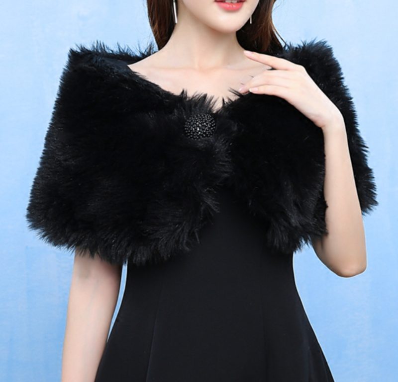 Black Faux Fur Bridal Wrap Shawl Cape Shrug Bolero Coat Bridal Stole Formal Shoulder Cover Scarf Jacket Wedding Accessories Womens Clothing Clothes
