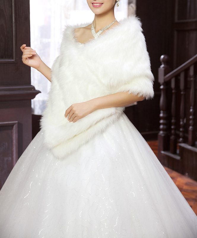 White Extra Long Faux Fur Bridal Wrap Shawl Cape Shrug Bolero Coat Bridal Stole Formal Shoulder Cover Scarf Jacket Wedding Accessories Womens Clothing Clothes