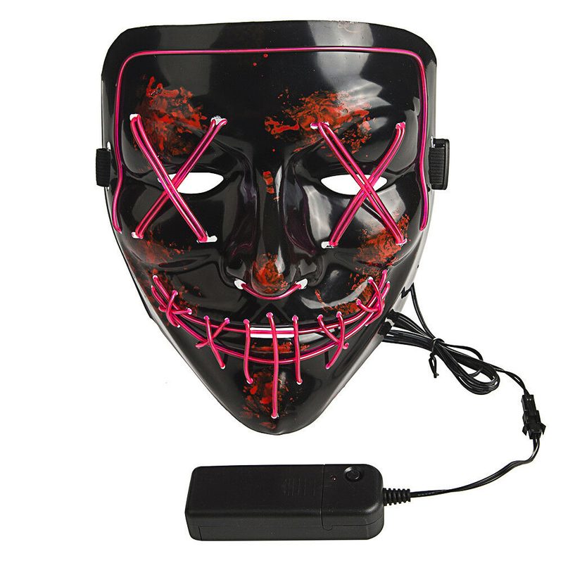 Brand New Halloween Mask Party Costume Mask Glow LED Light Up Masks "Stitches" Glow in The Dark Scary Face Costume Mask with 3 lighting Modes For Great Festival Halloween Rave Cosplay Party Costume Supllier (Pink)