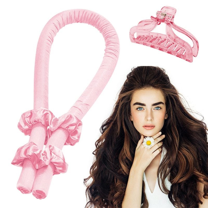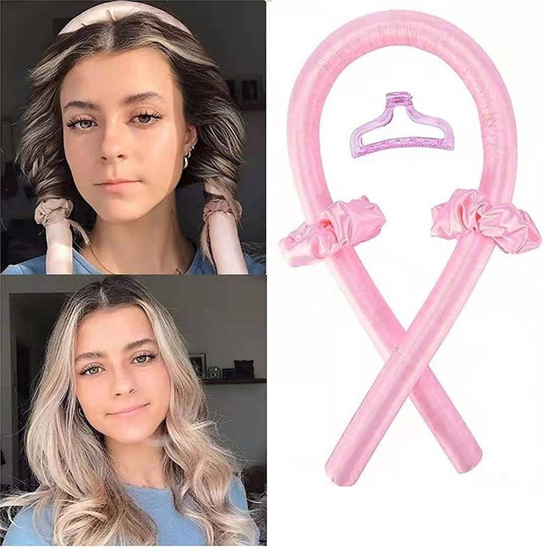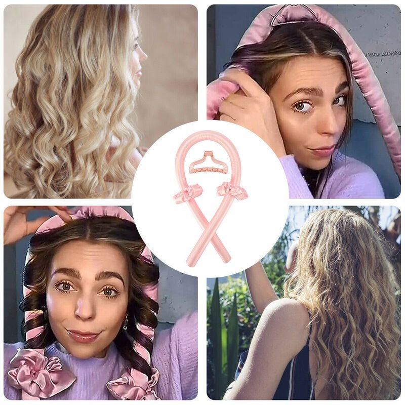 Brand New Reusable Heatless Curls Curling Rod Curler, Heatless Flexi Rods Headband, No Heat Silk Curlers Hair Rollers, Curly Hair Ribbon Soft Curlers Hair Wave Former HEATLESS Curling & Waving Methods (Pink)