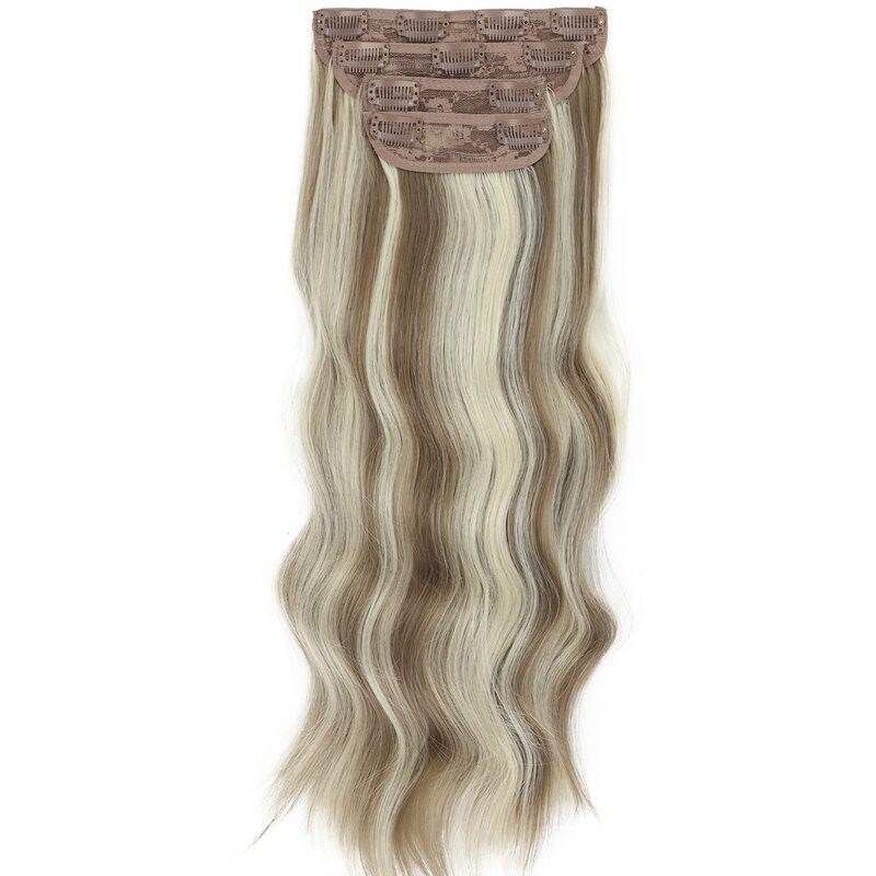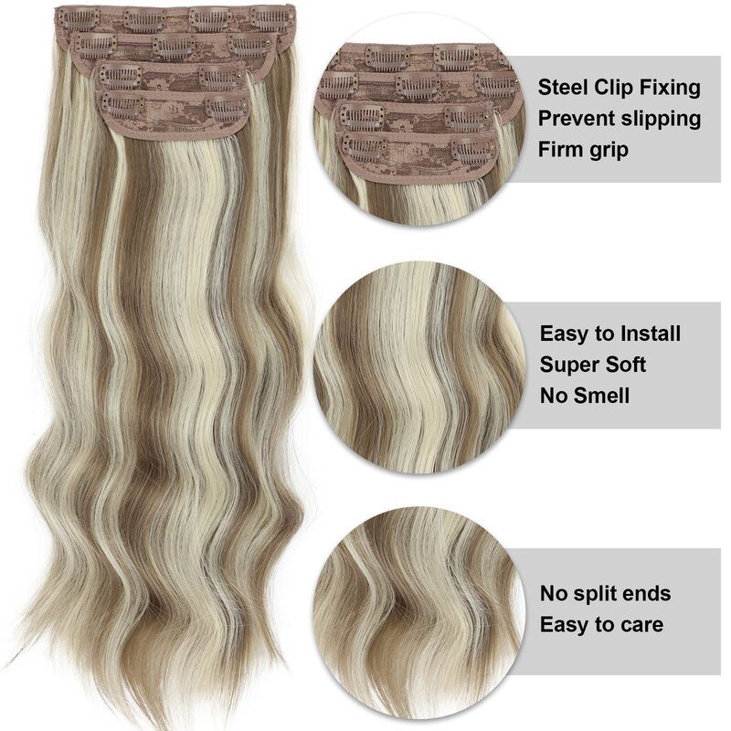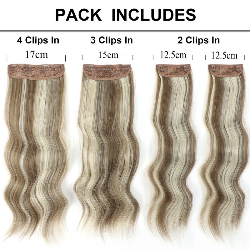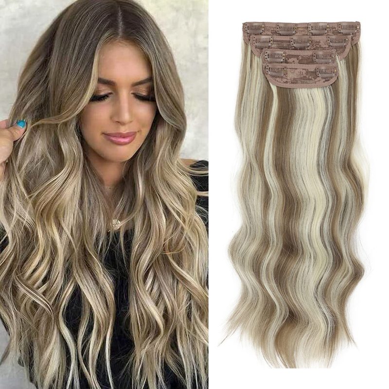 Sexy 4PCS Clip In Curly Long Hair Extensions Thick Wavy Hair Extension 20 Inch for Full Head Womens Wig Accessories Perfect Christmas Gift - Blonde Mix Brown
