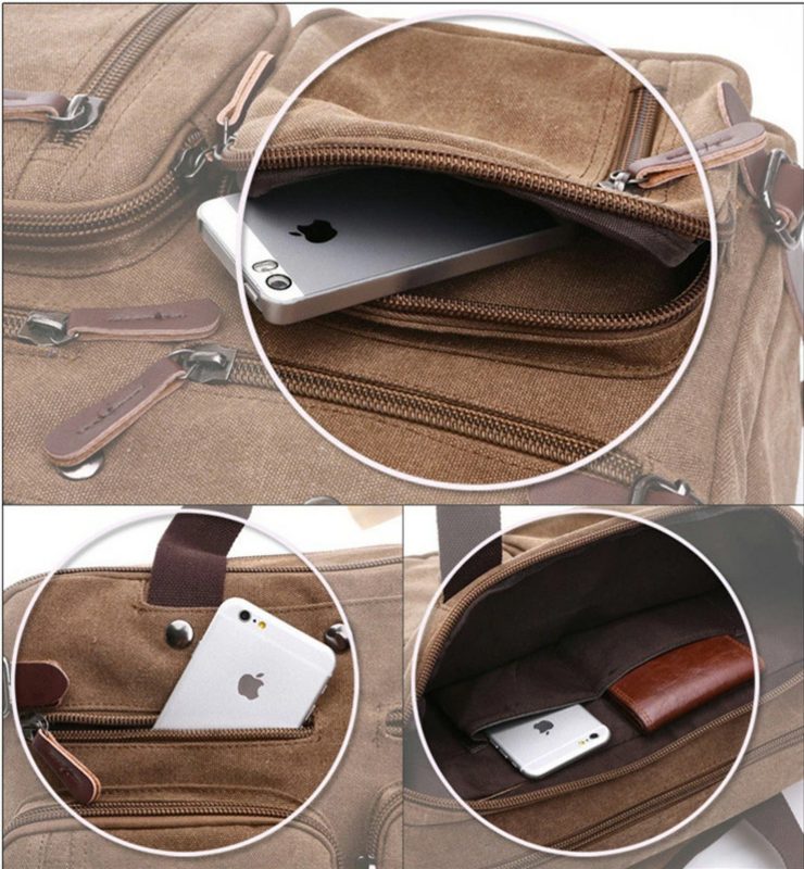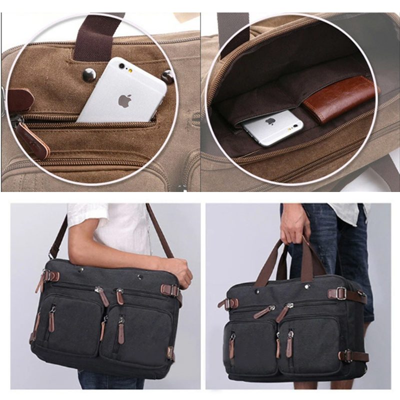 Brand New Vintage Canvas Crossbody Shoulder Bag, MultiFunctional Laptop Bag Satchel Work Office School Bag Laptop Computer Backpack with Adjustable & Detachable Shoulder Straps Briefcase Travel Bag For Travel, Work & Daily Use, Unisex for Men or Women (Khaki, L)