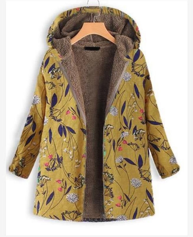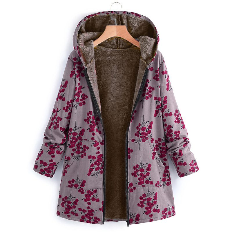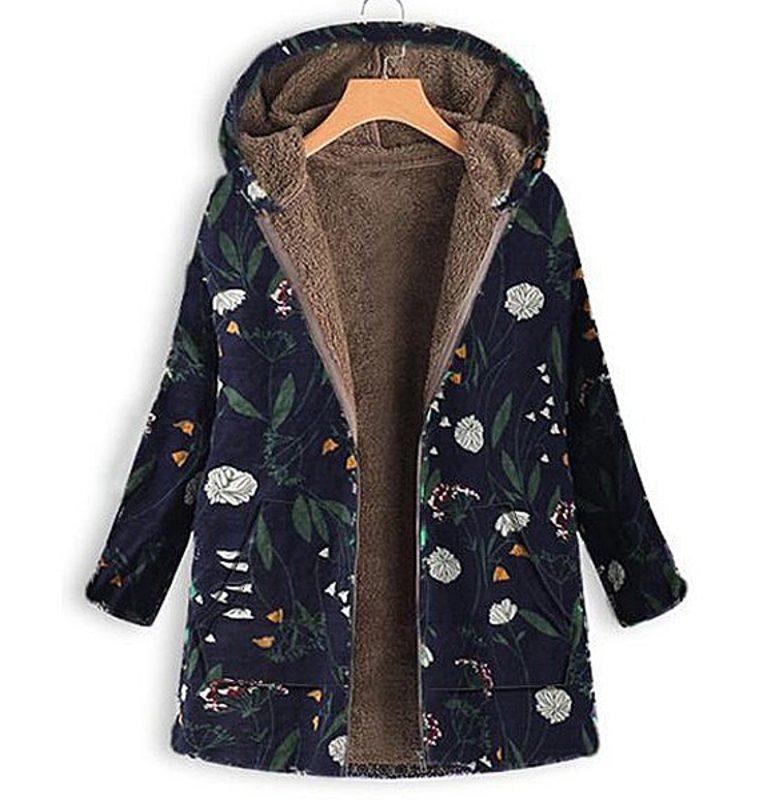 Green Boho Retro Floral Zip Up Faux Fur Fleece Winter Parkas Sweater Hoodie Coat Jacket Hooded Wind Jackets Blazer Womens Clothing Clothes Plus Size