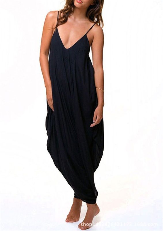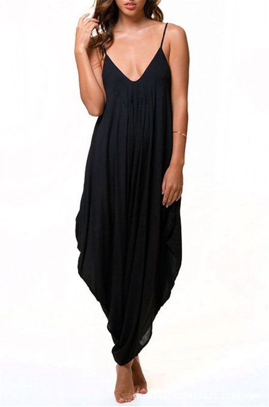 Sexy Black Harem Hippie Baggy Trapeze Jumpsuit Bodysuit Romper Overalls Pants Trousers Summer Dress Maxi Dress Wrap Dress Boho Dresses Womens Clothing Clothes