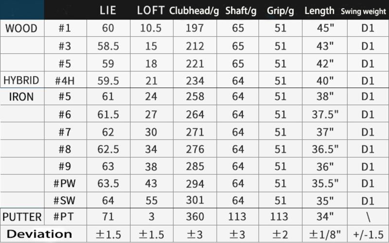 Size, weight, LIE, LOFT, and Swing weight: please check the second picture.