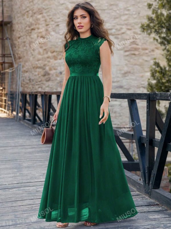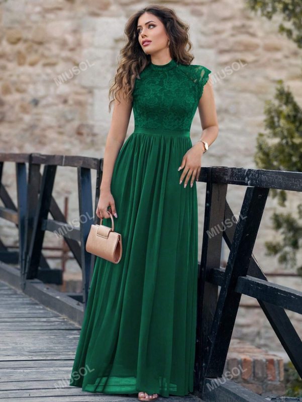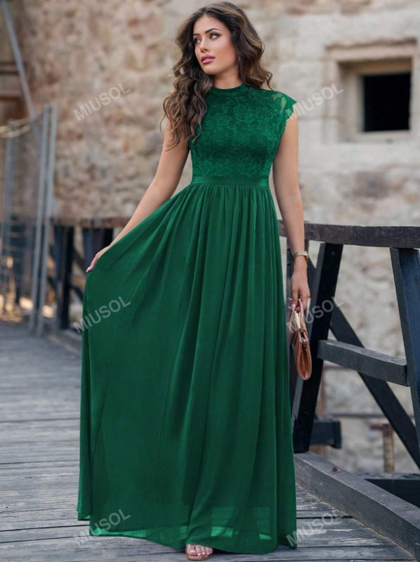 Brand New Quality MIUSOL Green Floral Lace Maxi Dress Party Prom Gown Maxi Evening Cocktail Long Dress Womens Clothing Clothes Maxi Ball Summer Wrap Evening Gown Cocktail Dresses For Dinner, Party Dress, Wedding Guest Dress, Formal Evening Plus Size