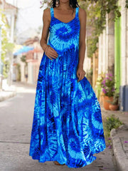 Brand New Gorgeous Blue Boho Sleeveless Tie Dye Pint Maxi Dress Long Tunic Dress Womens Clothing Clothes Cotton Bohemia Maxi Formal Ball Summer Wrap Evening Gown Cocktail Dresses Plus Size