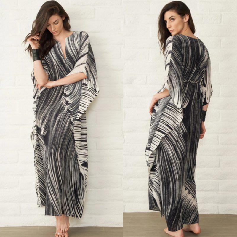 Fashion Black Geo Wave Print Kimono Cover Up Kaftan Maxi Long Dress Womens Clothing Clothes Bohemia Maxi Formal Ball Summer Wrap Evening Gown Cocktail Dresses