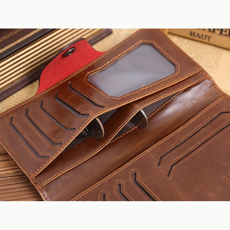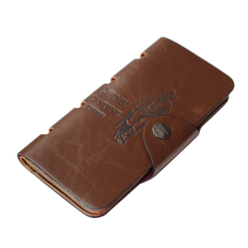 KW: Men's Brown Leather Money Clip Long Wallet Purse ID Card Holder Bifold Clutch